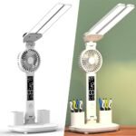 Lampe de Bureau LED Double Tête – Éclairez, Rafraîchissez et Organisez votre Espace
