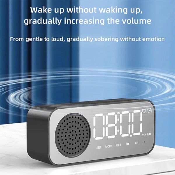 ✔️ Design polyvalent: enceinte Bluetooth, réveil numérique, appels mains libres et écran miroir LED